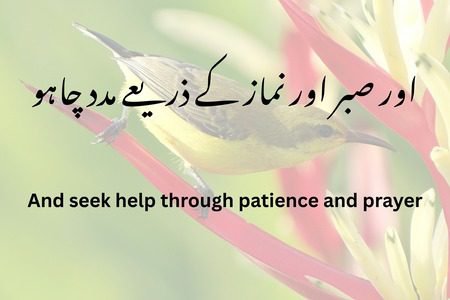 سورہ البقرہ میں ارشاد ہے: “وَ اسْتَعِیْنُوْا بِالصَّبْرِ وَ الصَّلٰوةِ” (اور صبر اور نماز کے ذریعے مدد چاہو۔) “And seek help through patience and prayer.”